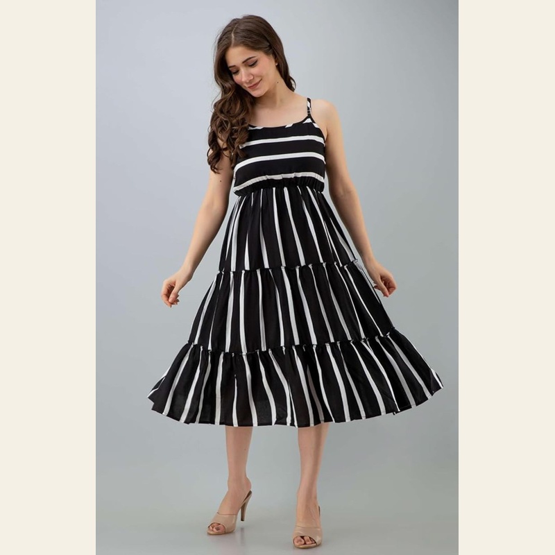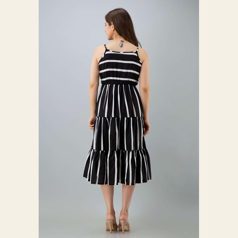 Be the first to review “Black & White Striped Tiered Midi Dress” Cancel reply