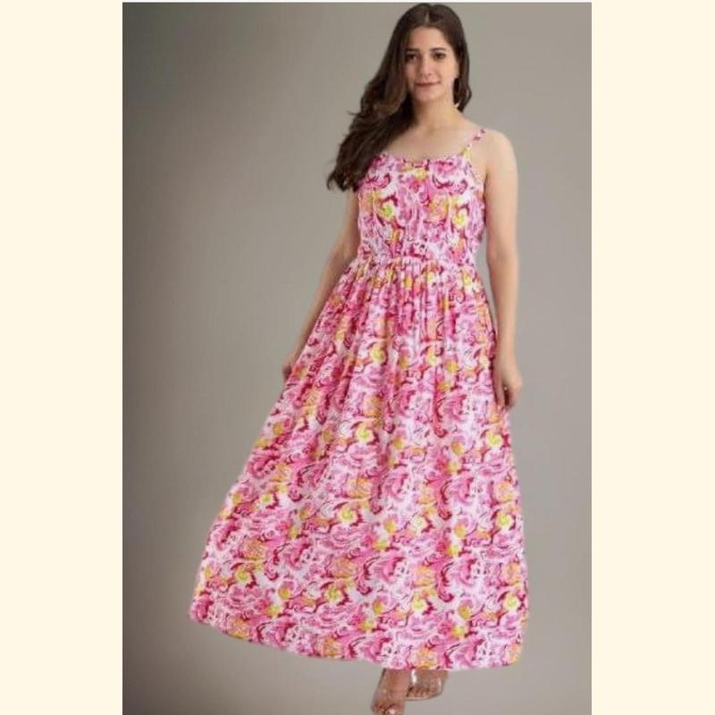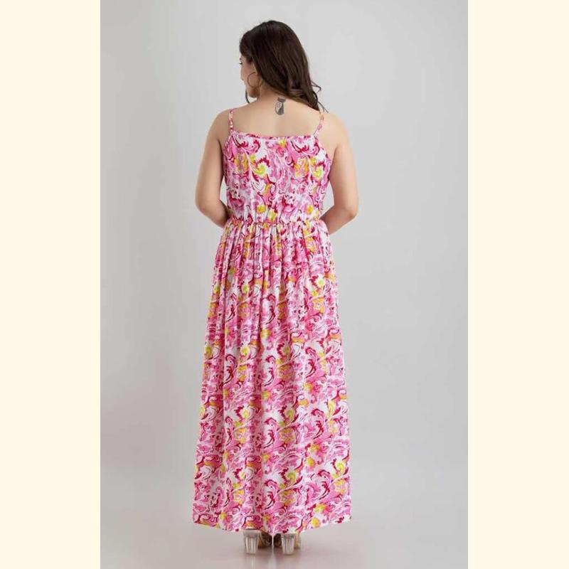 Turn heads in this Pink & Yellow Abstract Printed Maxi Dress, designed for both comfort and style. Featuring adjustable shoulder straps, a flattering gathered waistline, and a breezy full-length flow, this dress is perfect for summer days, brunch outings, or casual gatherings.