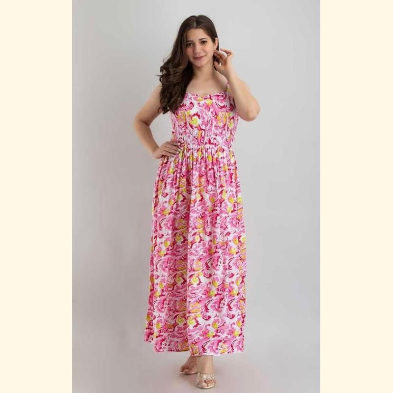 Be the first to review “Pink & Yellow Abstract Printed Maxi Dress” Cancel reply